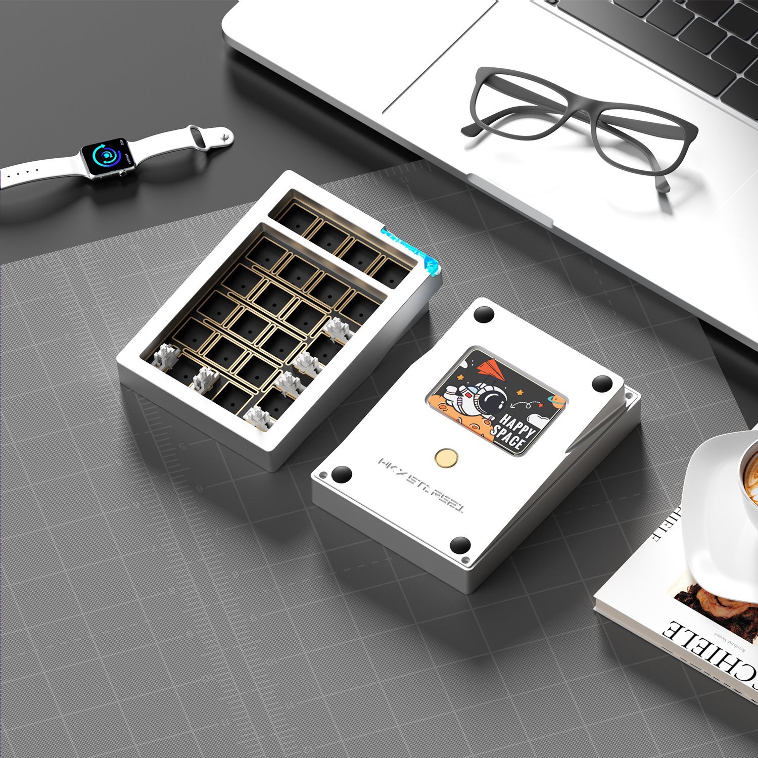 Stars21 plus utilizes a PCB-gasket mounting structure with soft silicone pads between the PCB and case. Internally, it contains four layers of sound-dampening material: PE foam, IXPE foam, poron switch pad, and bottom foam. This construction reduces vibration and minimizes internal resonance during typing